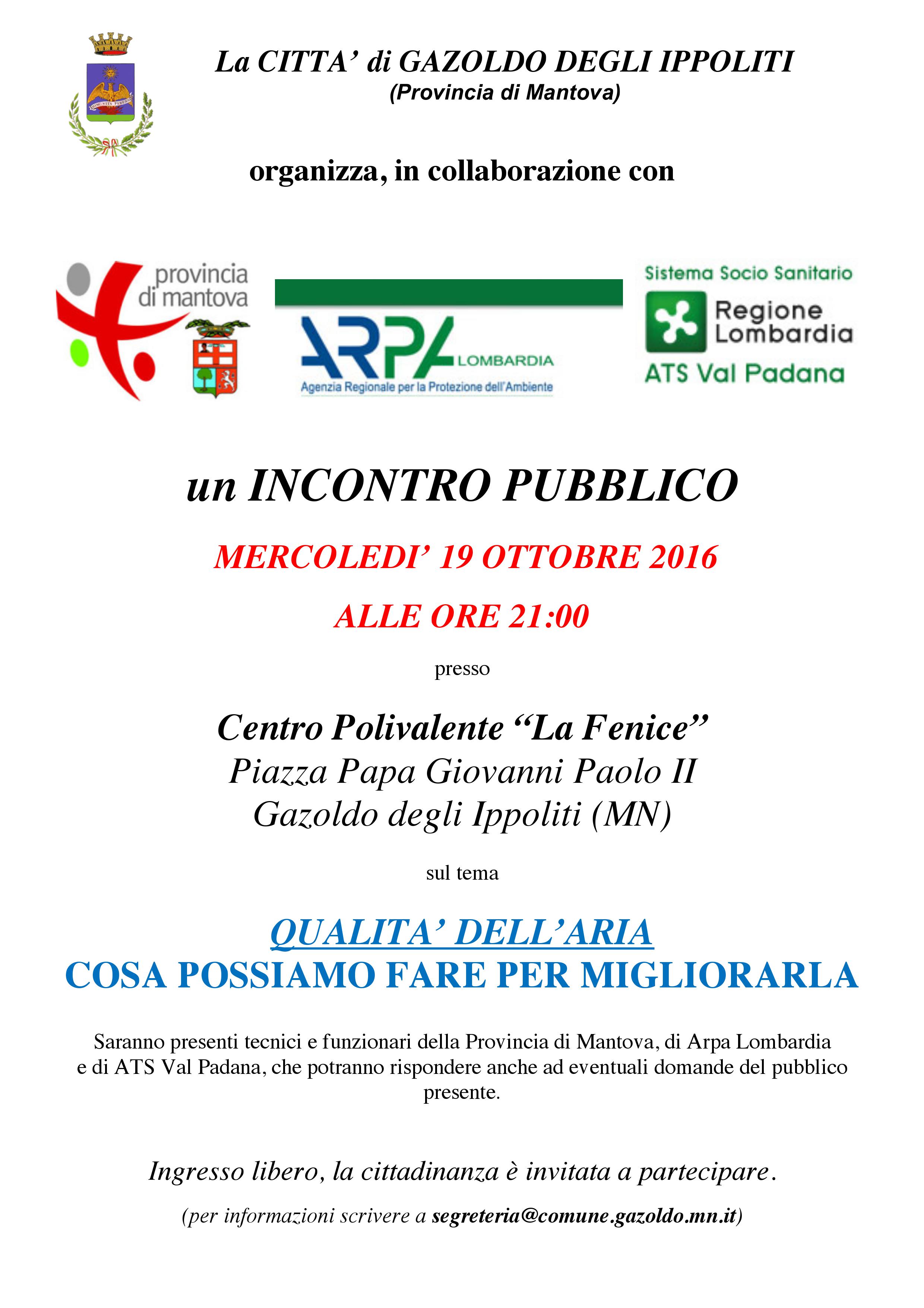 Incontro pubblico mercoledì 19 ottobre a Gazoldo degli Ippoliti