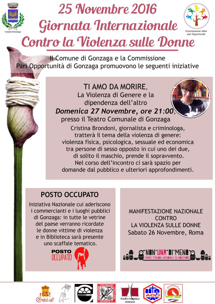 GAZOLDO DEGLI IPPOLITI: incontro "Libere dalla violenza" alle ore 21, nella Biblioteca comunale con Lara Facchi, sociologa, crimonologa forense del Centro Donne Mantova Soc. Coop. Onlus, dal tema "Le forme e le dinamiche della violenza sulle donne" . Evento Organizzato dal Comune