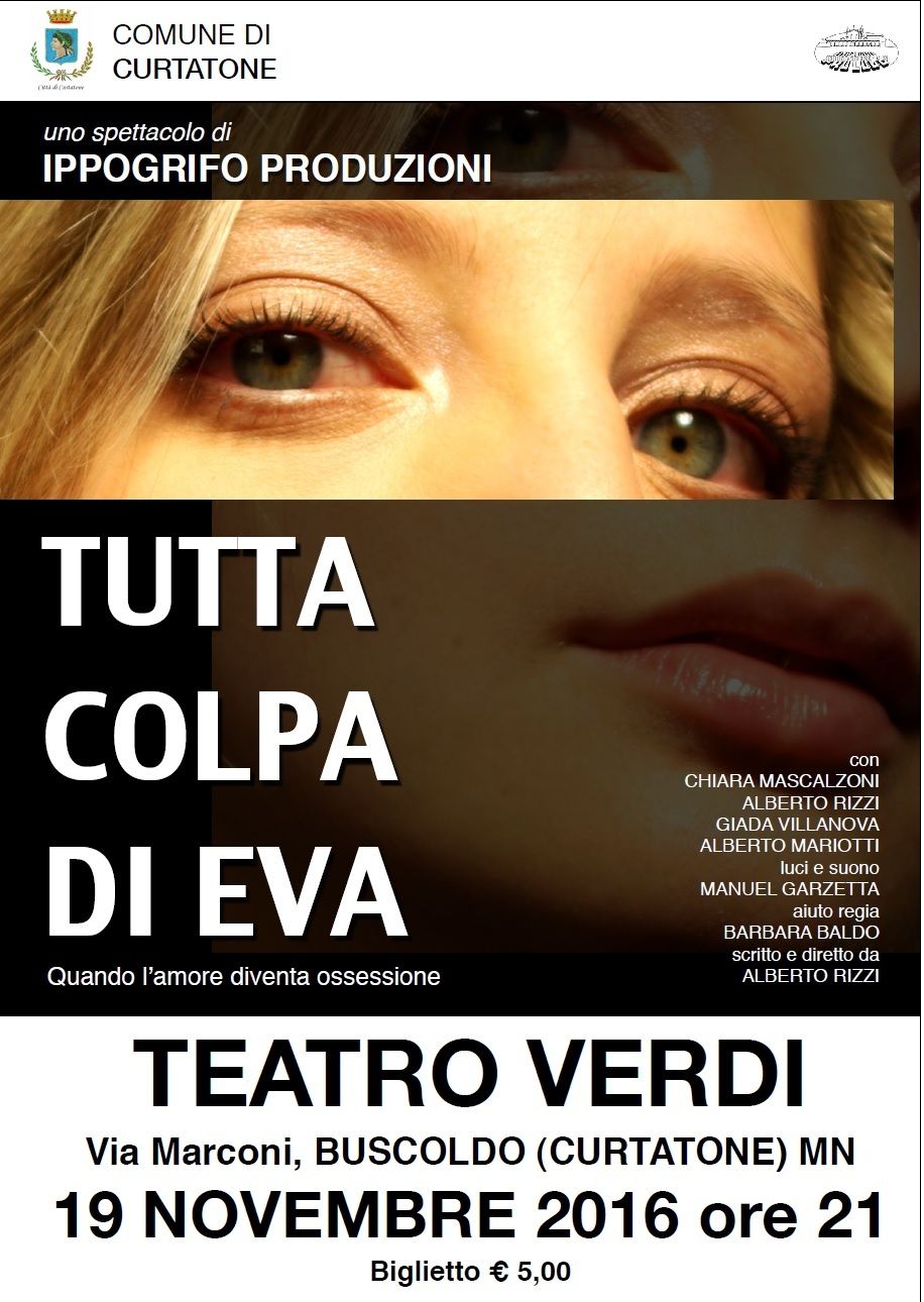 CURTATONE: spettacolo teatrale "Tutta colpa di Eva" alle ore 21 nel teatro Verdi, a cura di Ippogrifo Produzioni. Evento promosso dal Comune
