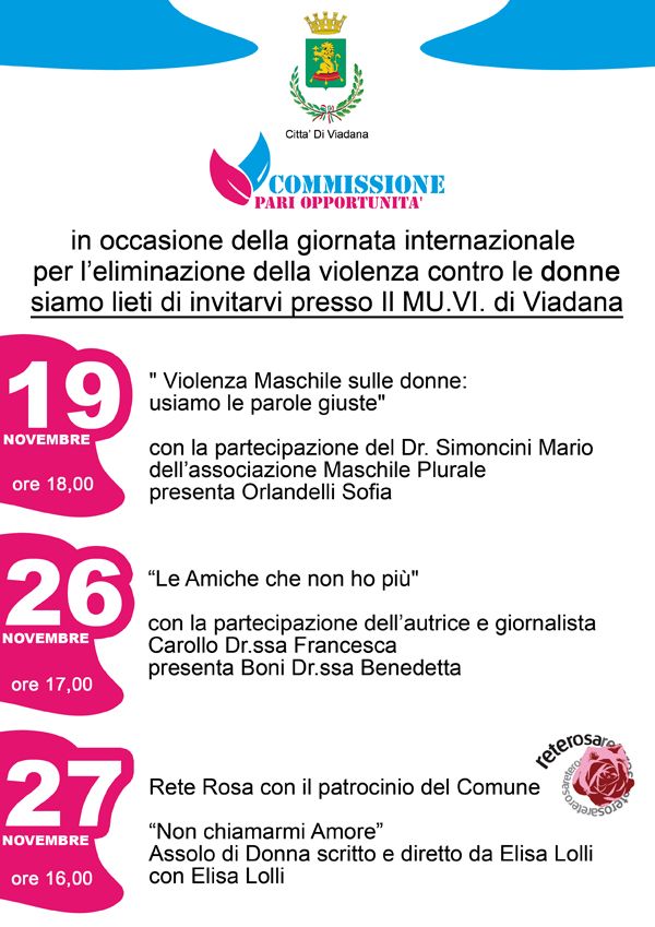VIADANA: "Violenza maschile sulle donne: usiamo le parole giuste" alle ore 18 al MU.VI. con la partecipazione del dr. Mario Simoncini dell'Associazione maschile plurale, presenta Sofia Orlandelli a cura della Commissione Pari Opportunità del Comune